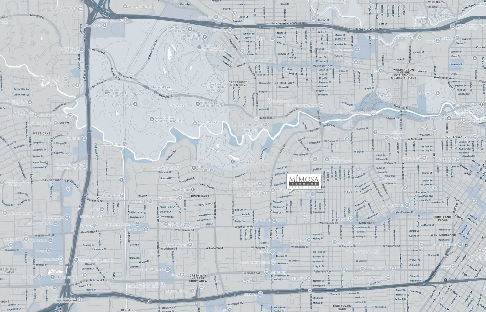 Mimosa Terrace offers an unparalleled location in the renowned River Oaks neighborhood, nestled on a tranquil interior street that provides both privacy and access to the heart of one of Houston’s most sought-after areas. This prime setting allows residents to enjoy the charm and serenity of tree-lined streets, where you can step outside and take a leisurely walk with your dog amidst beautiful homes, lush landscaping, and friendly neighbors. The neighborhood’s peaceful atmosphere creates a sense of community, offering the balance of convenience and tranquility. Mimosa Terrace delivers an exceptional living experience that feels like home.